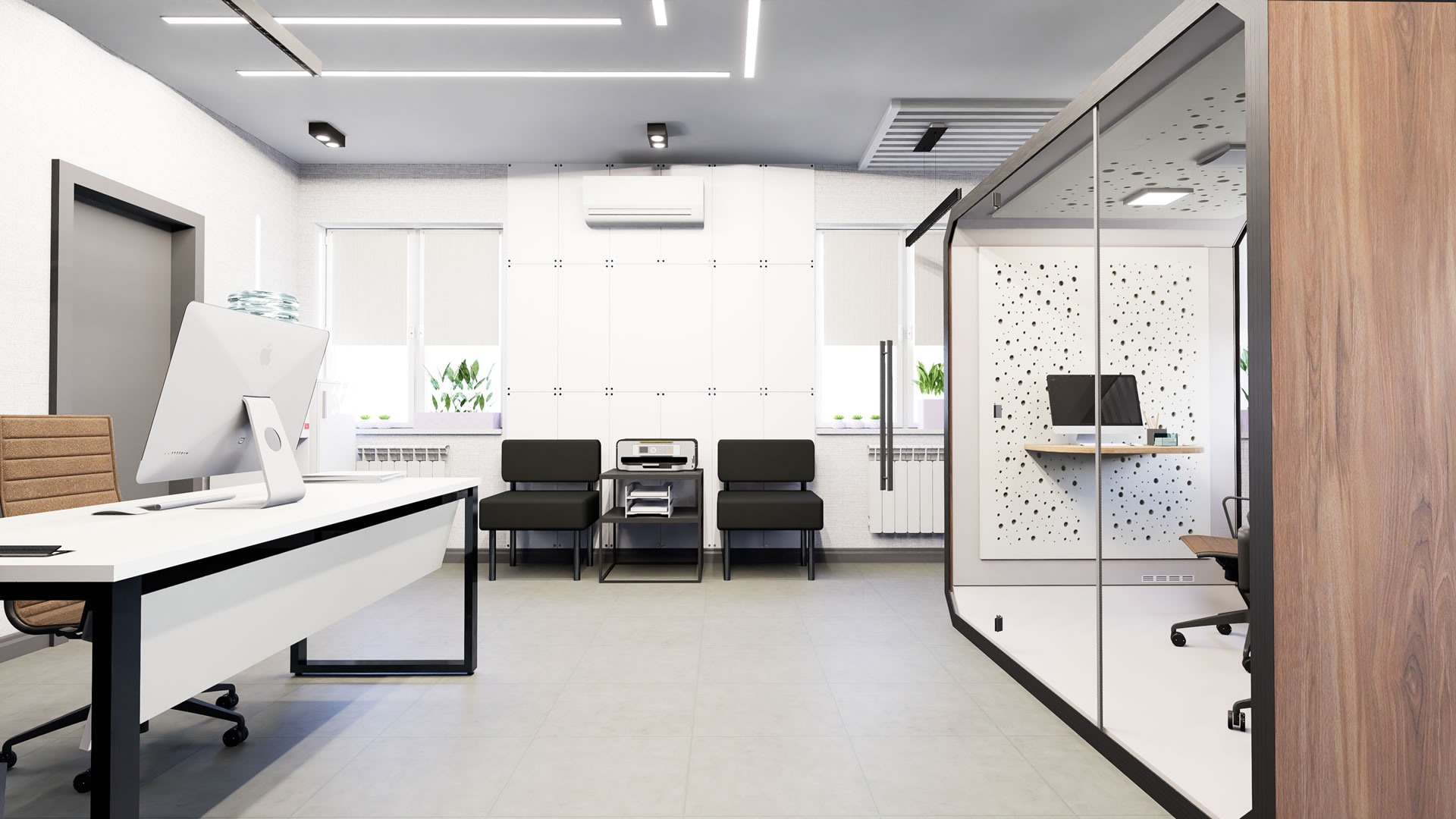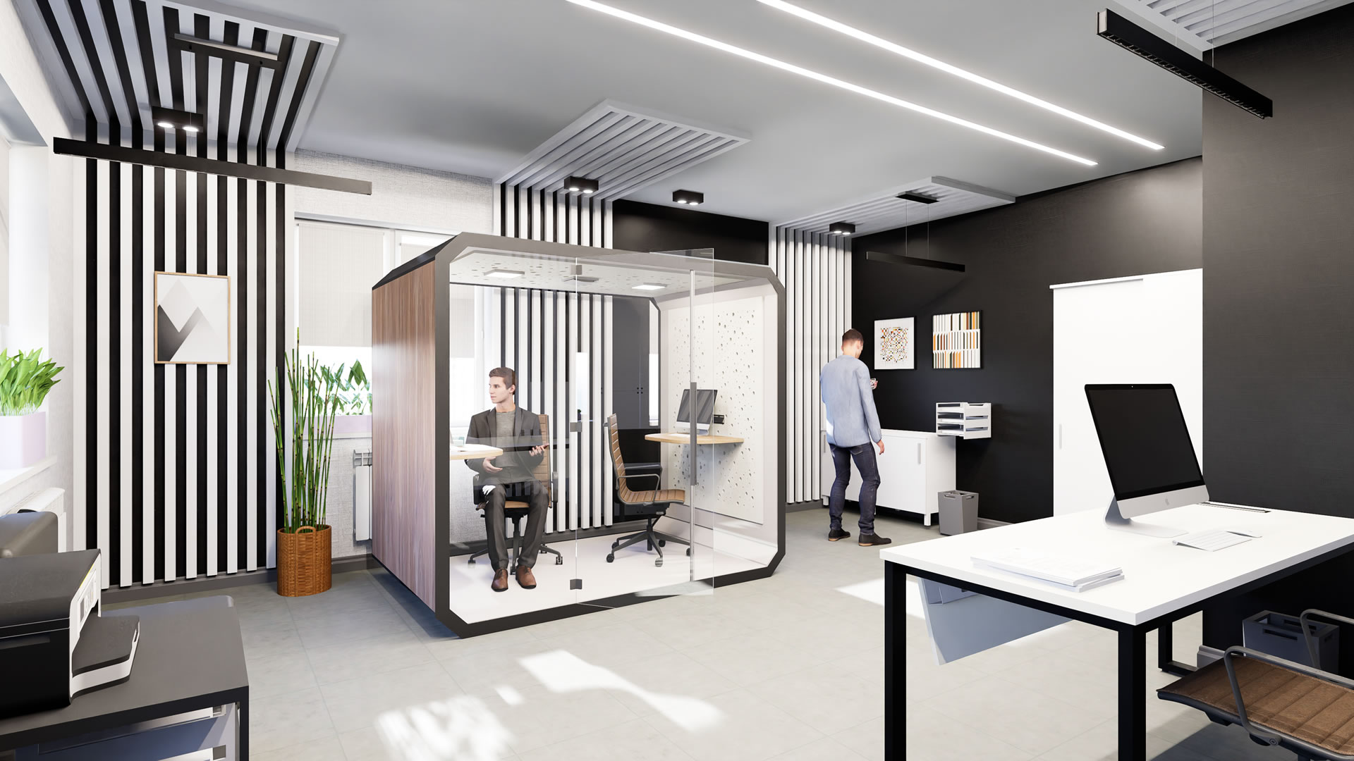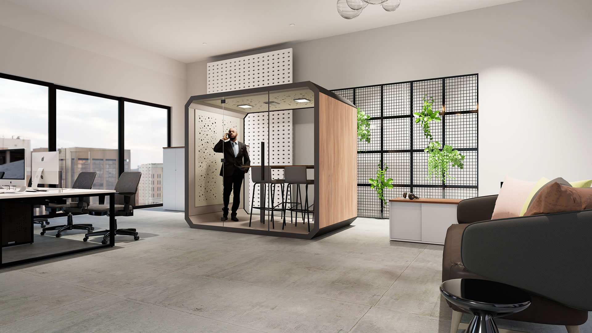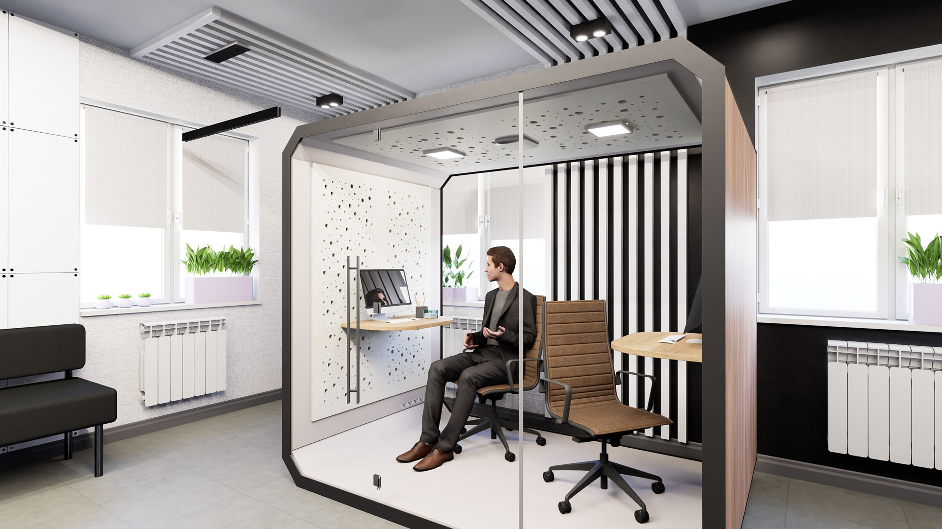4. Economia de Espaço: Com dimensões compactas, as cabines ocupam menos espaço do que salas de reunião tradicionais, dando uma melhor utilização do ambiente corporativo.